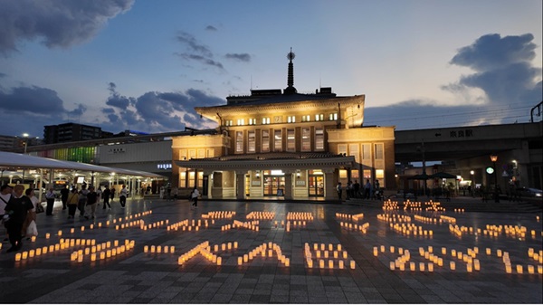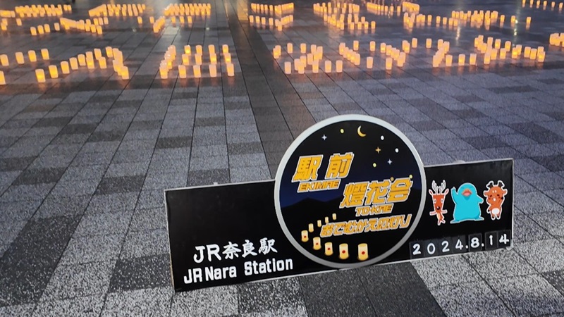 点灯時間の午後7時まで少し時間があったので、三条通の「餃子の王将」で食事を済ませた後、奈良駅前広場を皮切りにスタート。