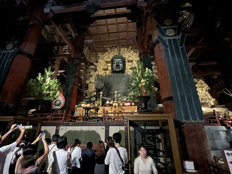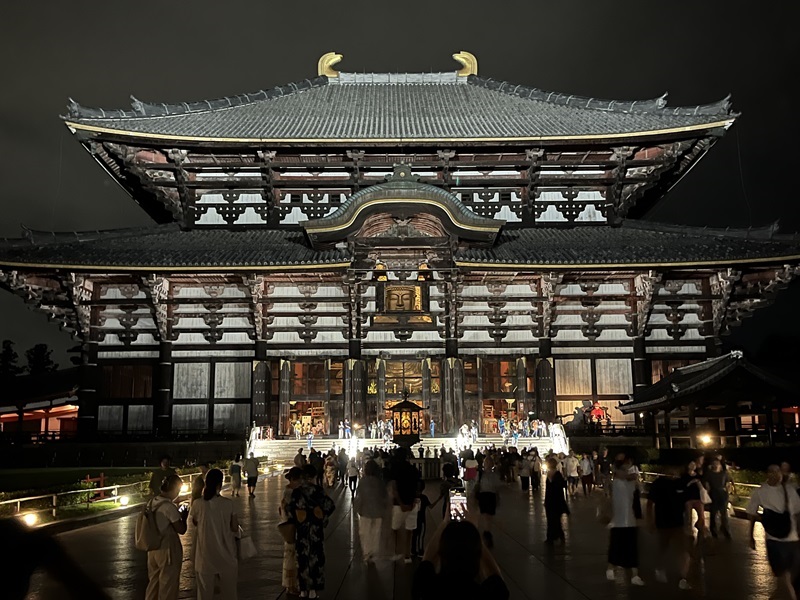 特に、東大寺は大仏殿の中門が開放されて夜間拝観ができるのに加え、観想窓が開いて大仏様の御尊顔を拝することができるという滅多にない機会とあって、入場制限まであるほどたくさんの方々がお参りに来られてました。