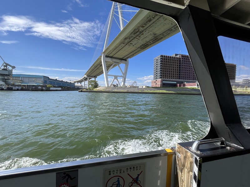 観光船ではありませんが、出港後すぐ東の奥に都心(梅田方面)が見えたり、天保山大橋をくぐったり…と、短時間ながらちょっとした船旅気分を味わえました。