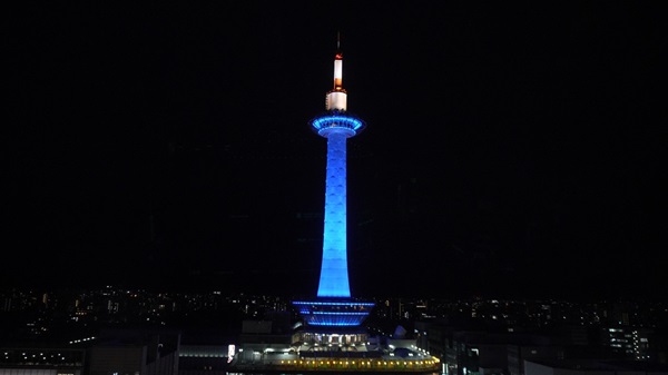 とにかく、最近の京都タワーは、イベントや社会活動だけでなく、個人・家族の記念日でもライトアップサービス(有料)があったりして、色付きのタワーが見られると得したような気分になります。