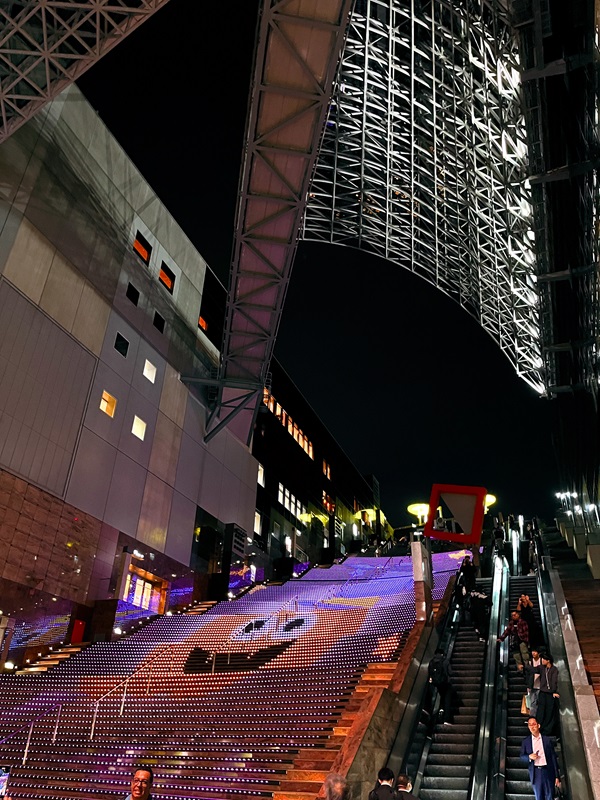 京都駅ビルも空中径路のライトアップや大階段のグラフィカルイルミネーションを実施。
