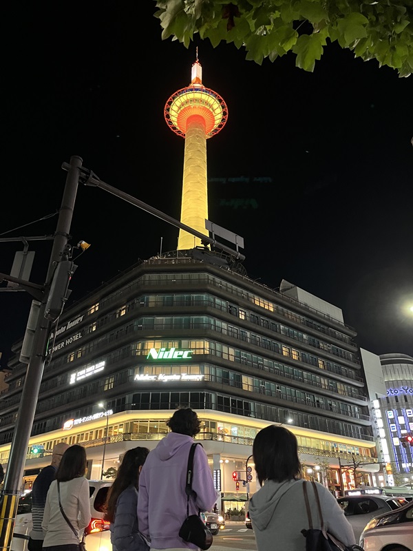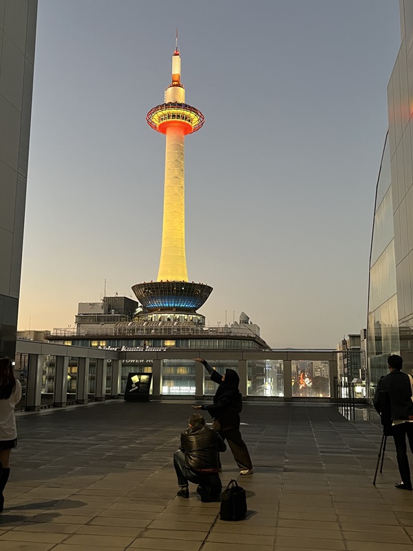 日没後、京都タワーのライトアップを見学。