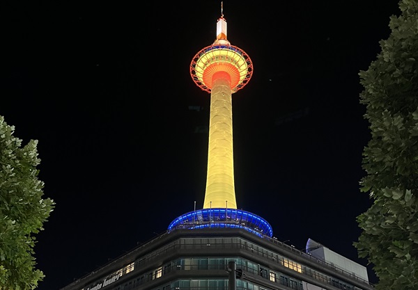 日没後、京都タワーのライトアップを見学。