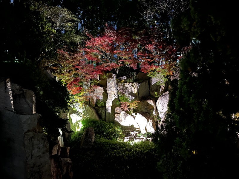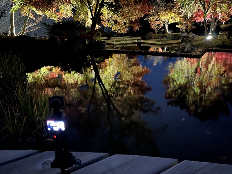 金曜日の仕事帰り、けいはんな記念公園の水景園に紅葉のライトアップを見に行った。