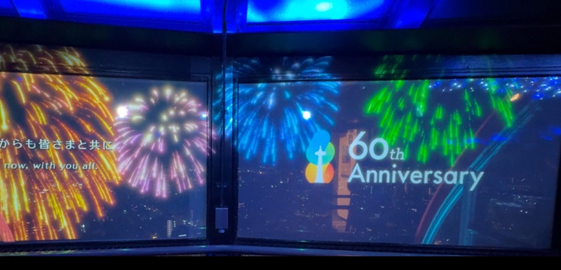 タワー展望室ではプロジェクションマッピングはじめ終日、イベントが続いてました。
