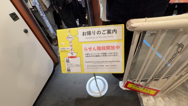 帰りのエレベーターも20分待ち、とのことでしたので、この日特別に開放された「階段」で降りてみました。