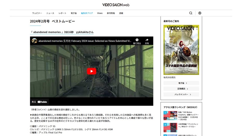 月刊ビデオサロンのWEBサイト「VIDEO SALON.web」で、