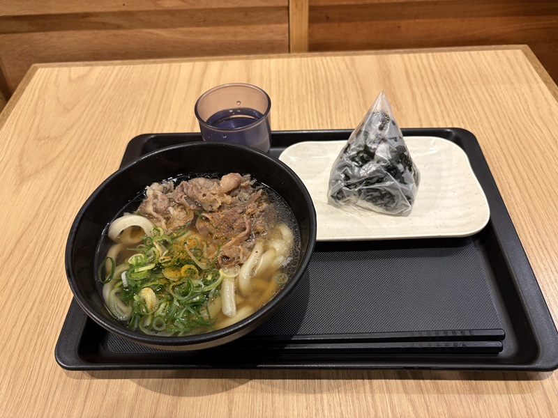 お昼ご飯…肉うどんと昆布おにぎり … 本町ではよく行くお店