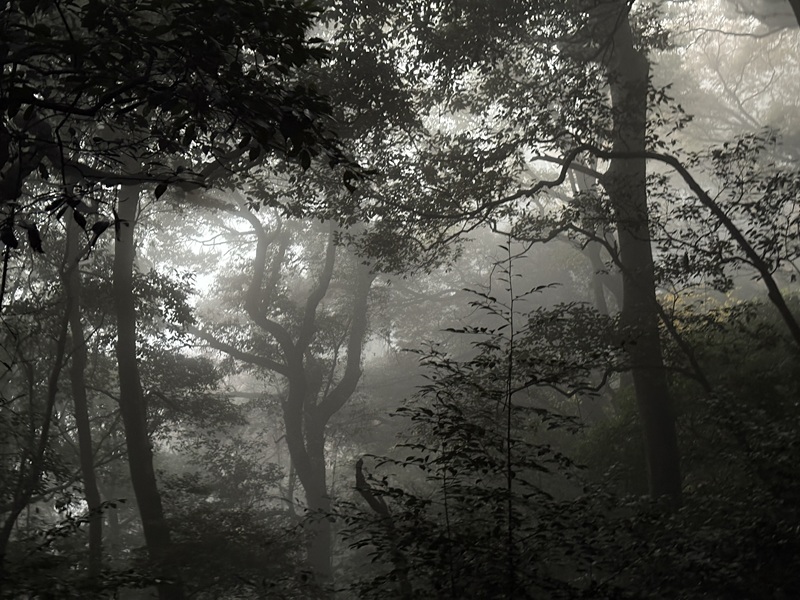 山上の撮影場所に到着した時は霧の中(雲海の中)