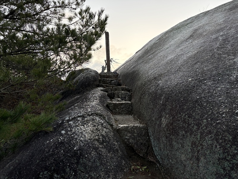 早朝は露で岩が濡れていたり、霜が降りていたりして滑りやすく、