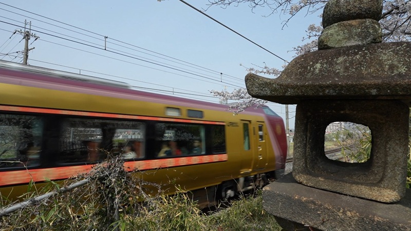 車両は683 系6000番台で、黄金色の「安寧」と灰渋色の「悠久」がある。