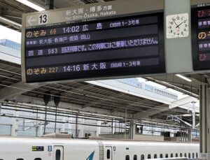 新幹線ホームの行先表示に「回送」「列車番号983番」の表示