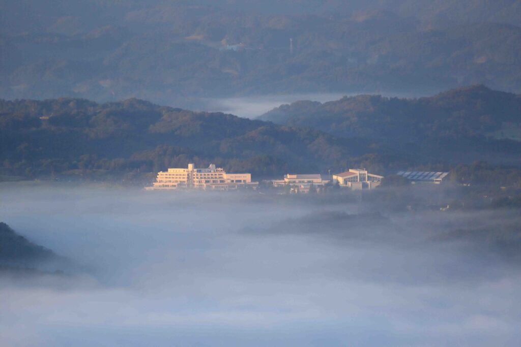 京都府南山城村にあるレイクフォレストリゾートの施設。この後、雲海がさらに発達して、施設は雲の中に隠れてしまいました。