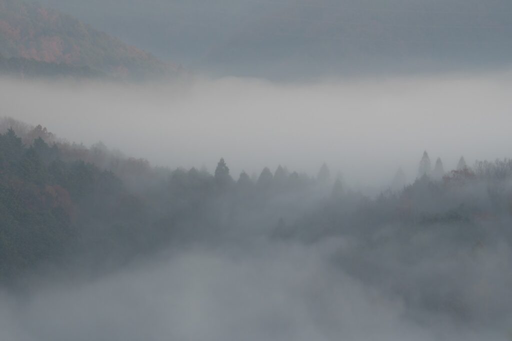 木津川が流れる京都府笠置町、南山城村、三重県伊賀市は、特に秋には、気象条件により、川の水蒸気が霧となって度々雲海が発生します。